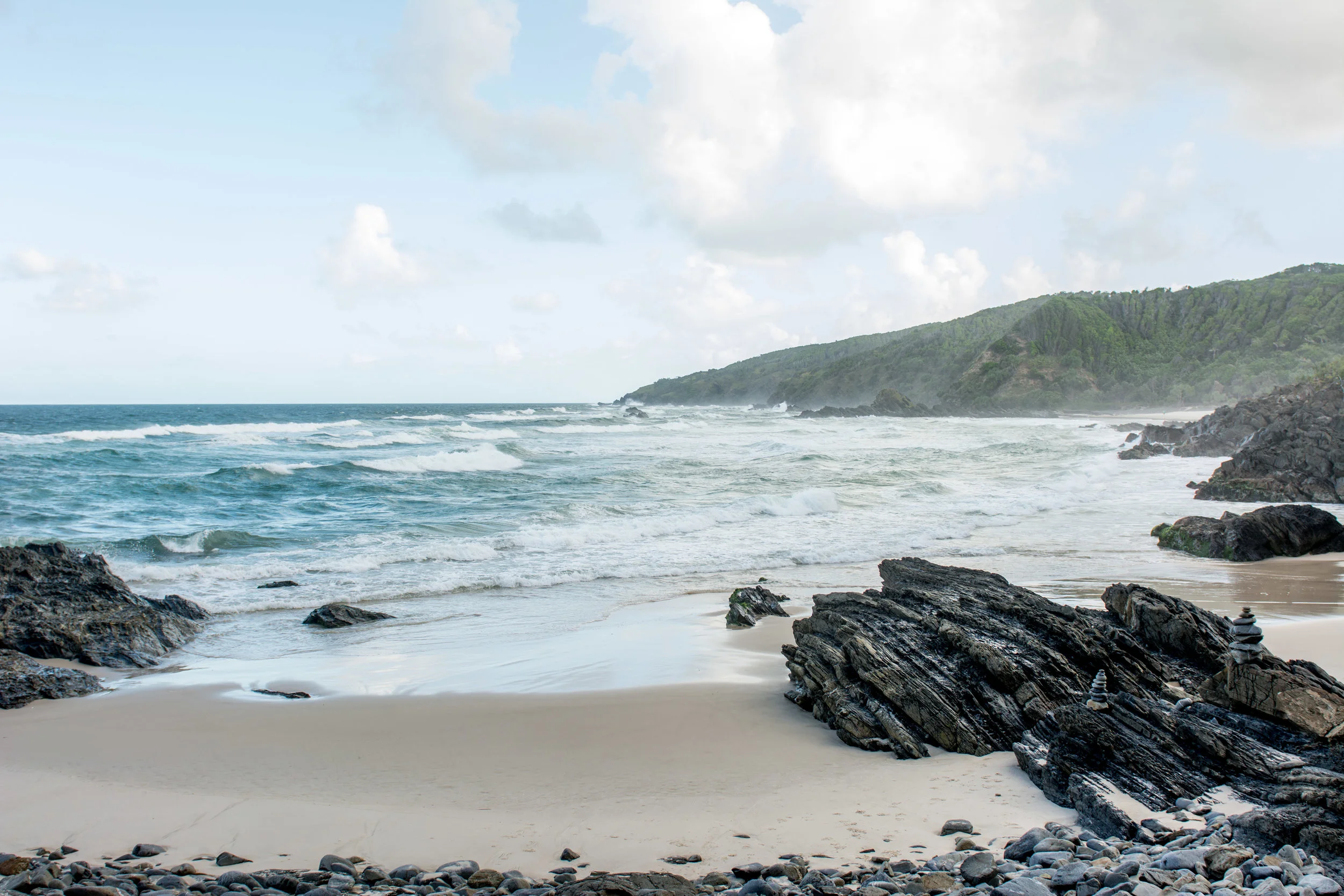 This one is a bit of a locals secret spot so I hope I am not breaking any hearts by sharing this! Whites beach is a little bit out of the way, tucked into the headland just south of Byron Bay. You can access it by a dirt road, however my favourite way to get there is a short and picturesque walking trail from the broken head caravan park. This walk also leads you past another gorgeous beach and the iconic three sister rocks.
