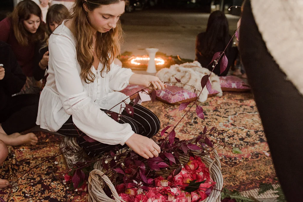Last week I had the chance to attend one of these events. From the moment I arrived the decor of bohemian carpets, sculptural dried flowers and antique candle holders, cast a spell on me. I felt zen and introspective and desire to go deeping into these feelings.