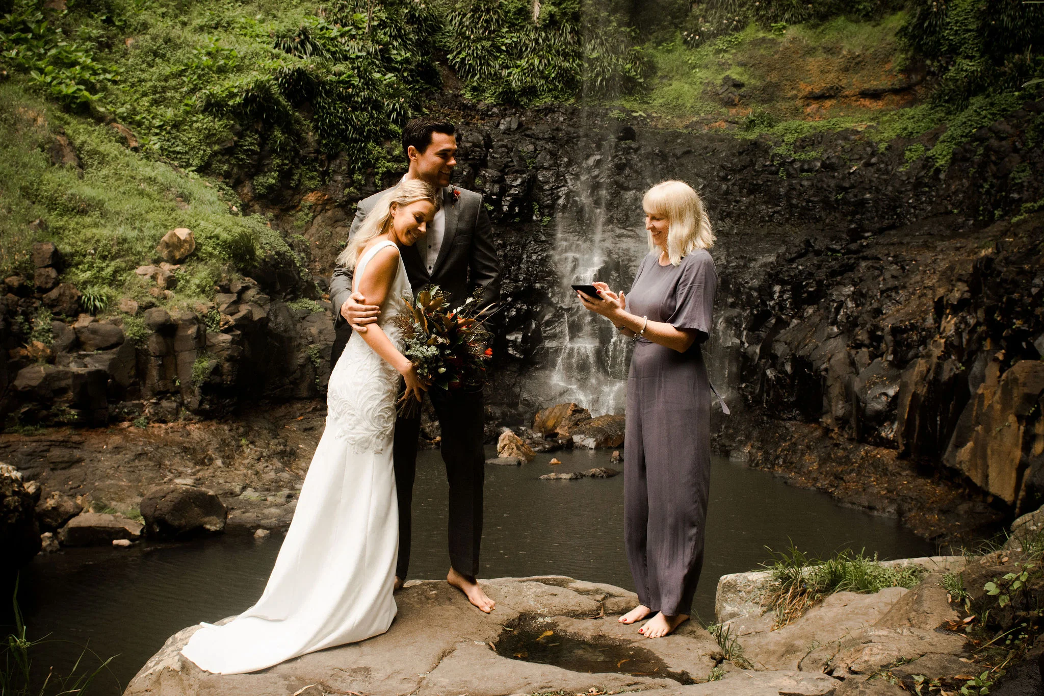 In late summer, I trekked deep into the Springbrook National Park with a team of eco-ethical wedding professionals for an elopement photo shoot at the base of a waterfall.