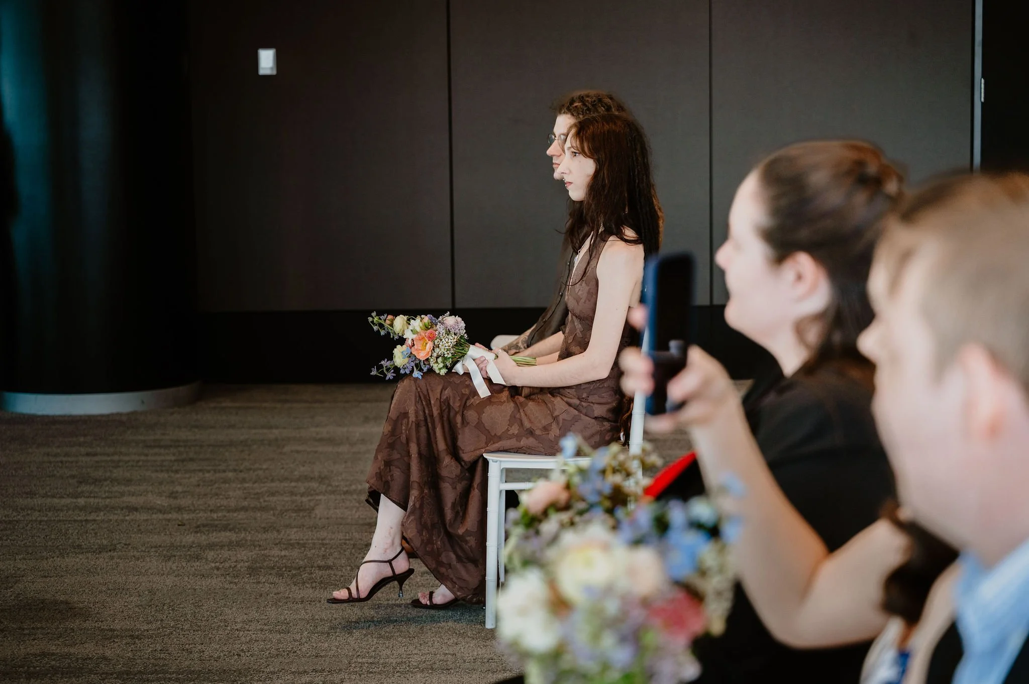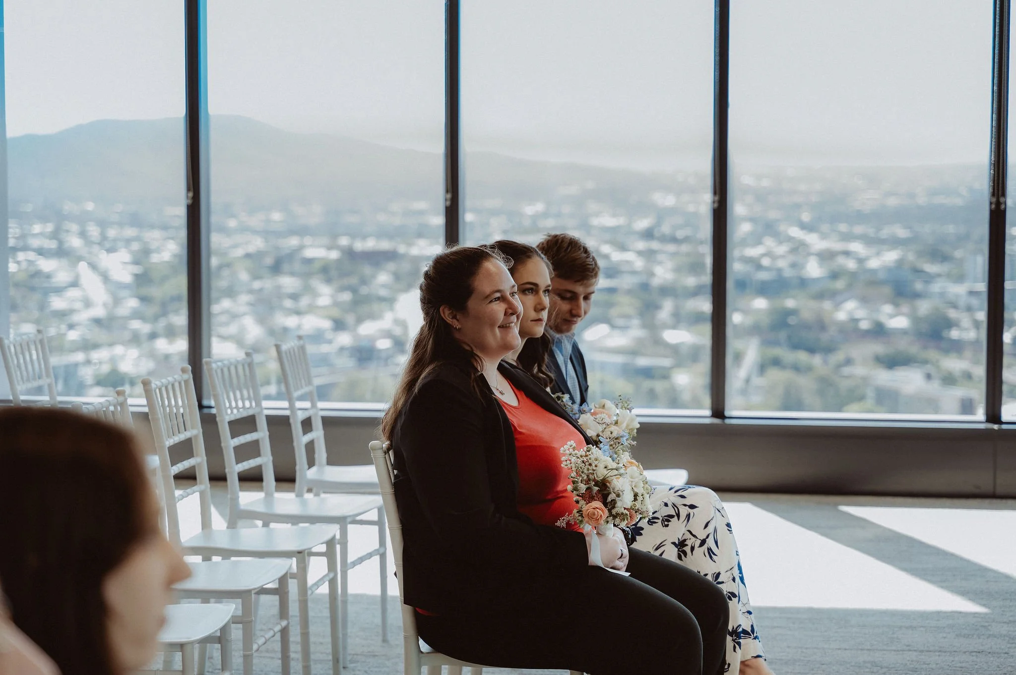I’d been hoping to photograph a wedding at the Brisbane Registry Office for a long time, so I was extra excited when they invited me to capture their afternoon. Sitting high above the city, the ceremony room is flooded with light, with sweeping views of Brisbane pouring in through those incredible floor-to-ceiling windows. It’s simple, elegant, and lets the moment itself take centre stage.